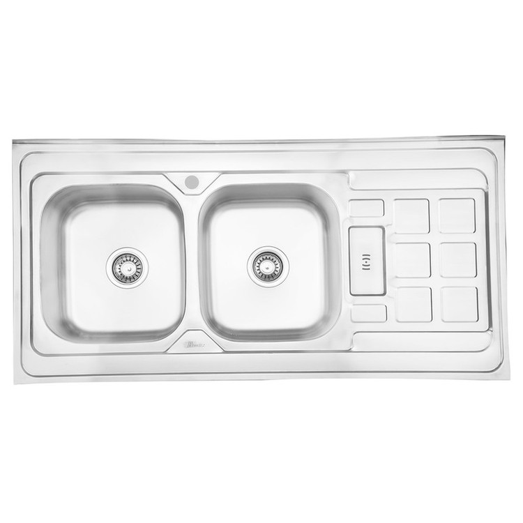 سینک ظرفشویی استیل روکار دو لگنه بیمکث مدل 919