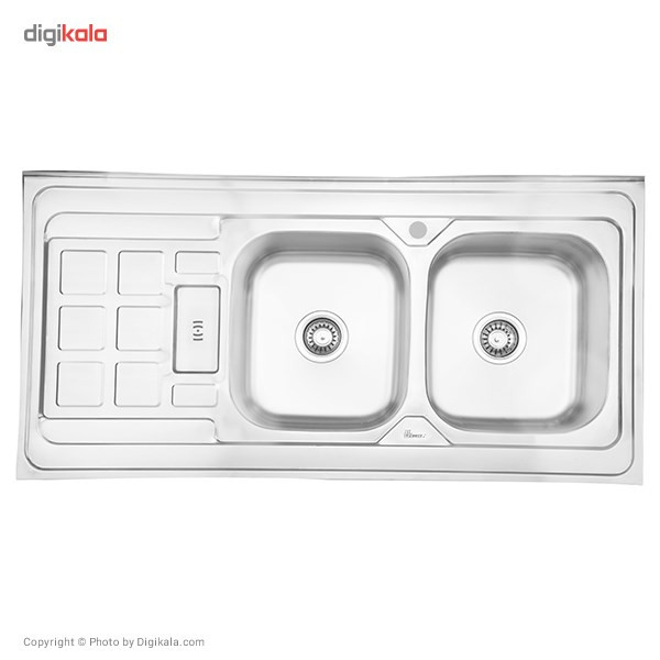 سینک ظرفشویی استیل روکار دو لگنه بیمکث مدل 919