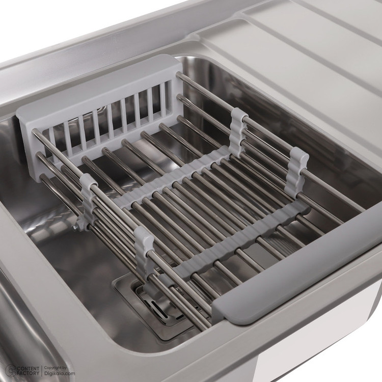 جنس بدنه استیل با ورق استنلس304 / ابعاد لگنها 34x39 سانتیمتر / لگن اصلی سمت چپ / ظرفیت هر لگن تا 24 لیتر / سیفون دارای دو کفشور و یک سرریز / دارای سرریز لگن / محل نصب شیر آب روی سینی / دارای سبد استیل کشویی / آببندی شده / زاویه گوشه لگن R40
