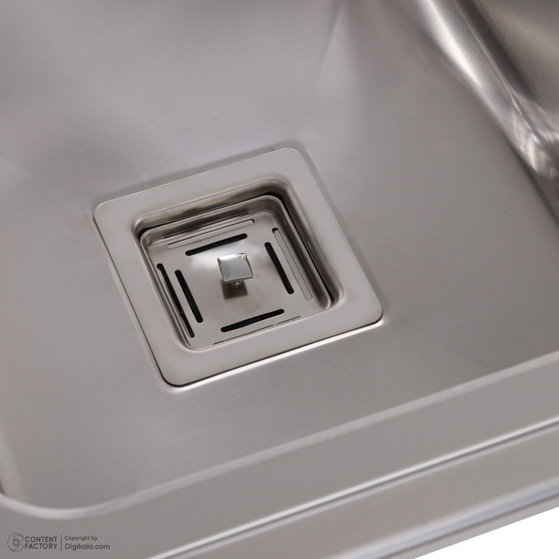 جنس بدنه استیل با ورق استنلس304 / ابعاد لگنها 34x39 سانتیمتر / لگن اصلی سمت چپ / ظرفیت هر لگن تا 24 لیتر / سیفون دارای دو کفشور و یک سرریز / دارای سرریز لگن / محل نصب شیر آب روی سینی / دارای سبد استیل کشویی / آببندی شده / زاویه گوشه لگن R40