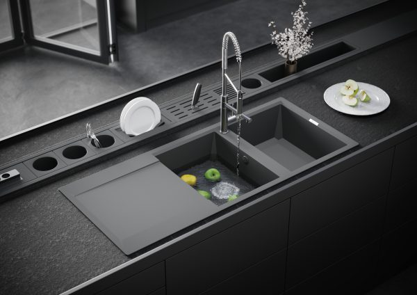 سینک ظرفشویی گرانیت توکار دو لگنه بیمکث مدل 4604